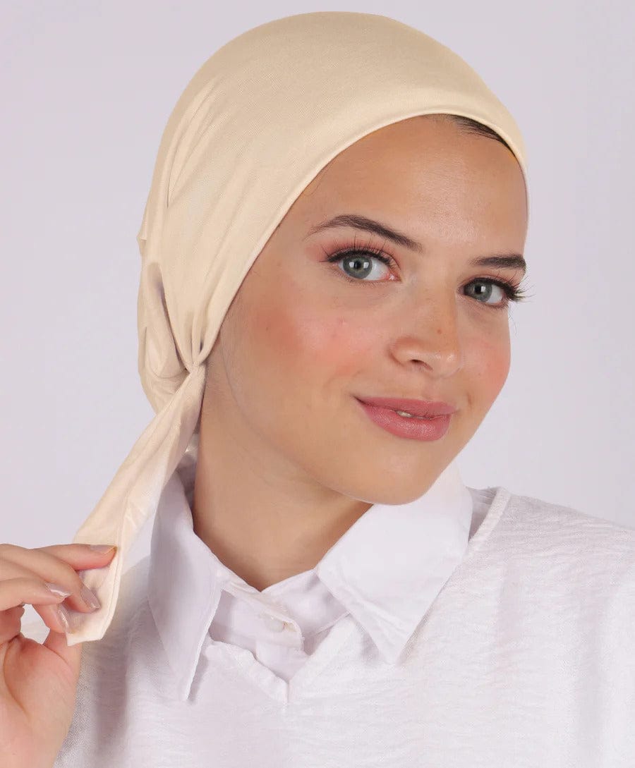 Beige Egyptian Cotton No-Thread Underscarf with Tie-Back