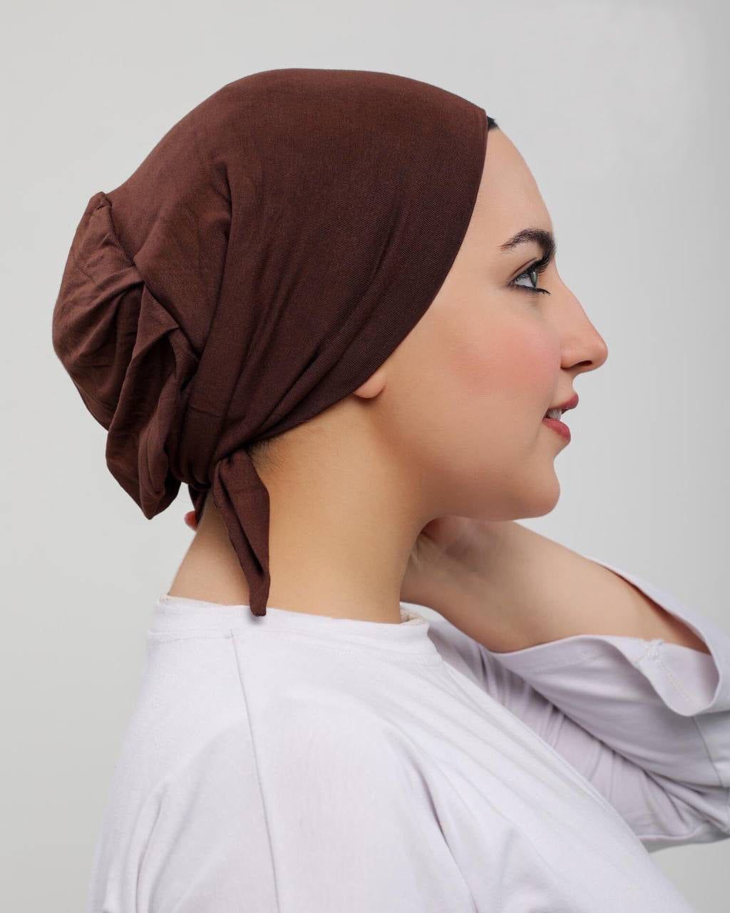 Brown Egyptian Cotton No-Thread Underscarf with Tie-Back