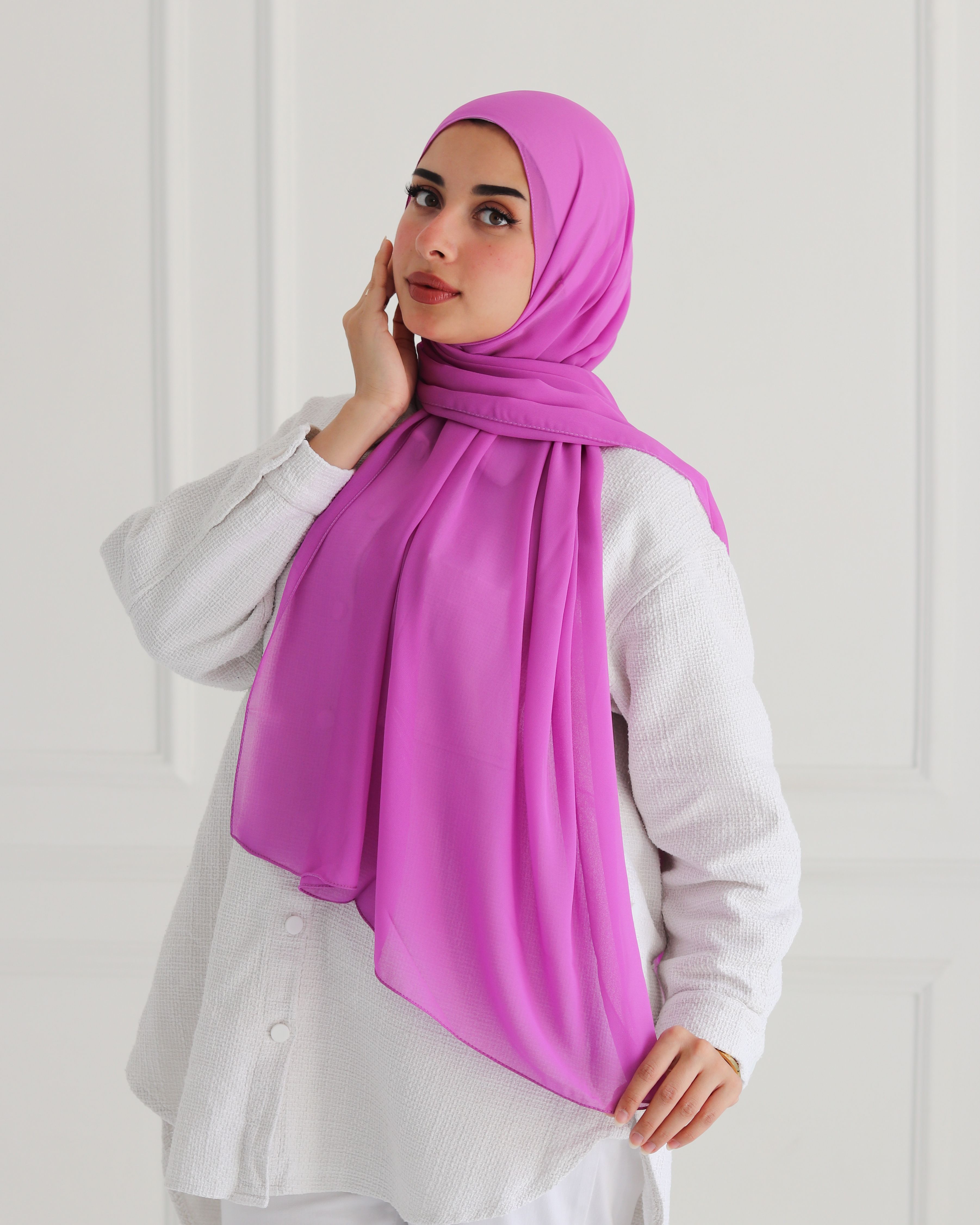 Electric Purple Plain Chiffon Scarf